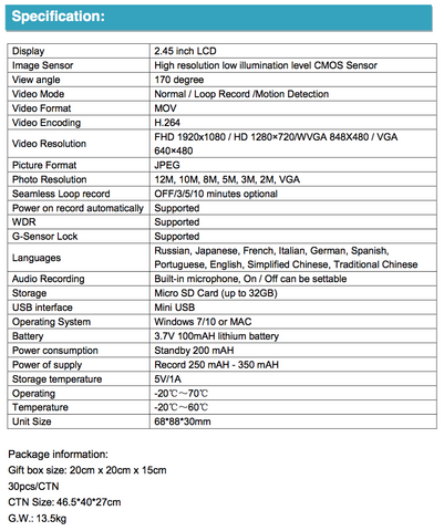This dash camera offers very high quality footage, recording in Full 1080p HD at 30fps. It uses the latest 7G glass lens which provides a wide 170 degree viewing angle to capture both sides of the road whilst maintaining image clarity. It's a model to have inbuilt WIFI, meaning you can quickly transfer footage to review on your smart phone or tablet, then simply share the footage with your insurer, friend’s or social media using the app. This small and handy Dash Cam can easily be tucked away behind your rear view mirror, ensuring your journeys are captured at all times!